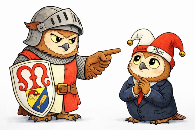 Rebellieren die Knappen und Junker zu wild, wird der Junkermeister vom Thron zur Verantwortung gezogen und bestraft. Ein Strafe, die er gerne übernimmt, hat er doch oft seine Zöglinge zu eben diesem Unsinn angestiftet.